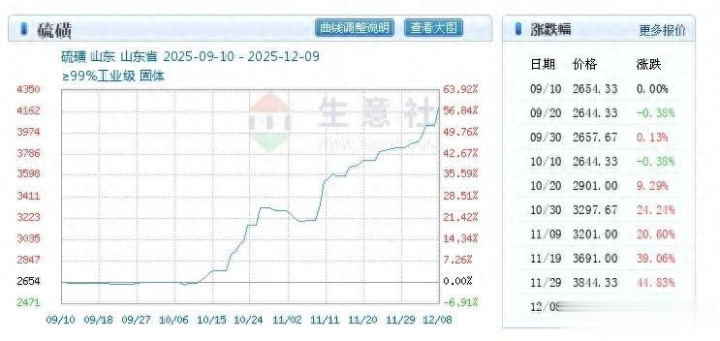 起点锂电获悉,自去年以来硫磺价格开始上涨,最新价格已经突破4000元/吨,成功变为“牛磺”。